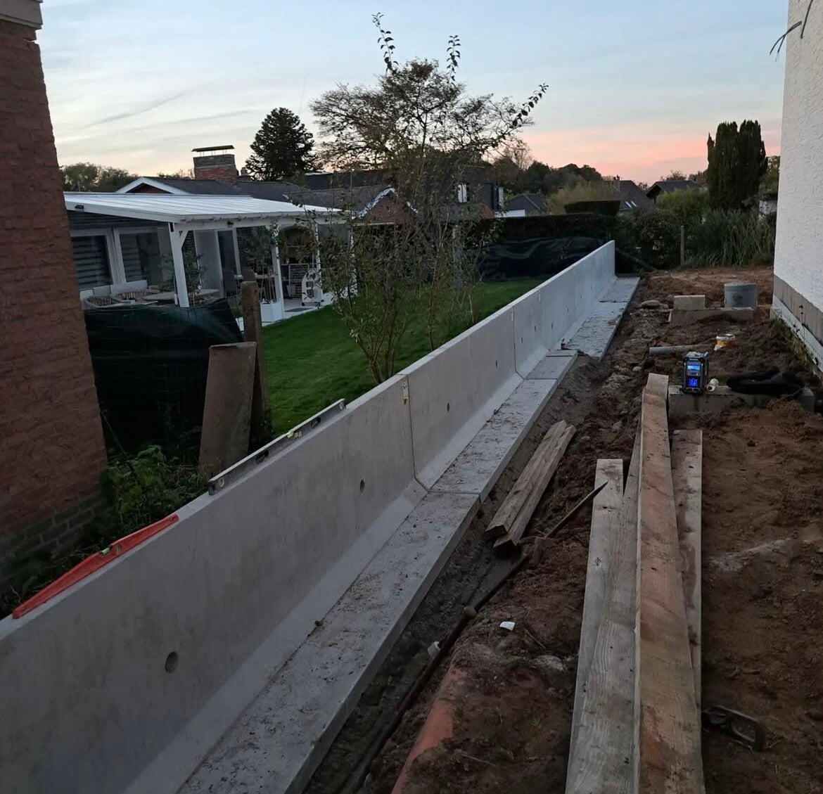 Plaatsen waterputten+ grondwerken + plaatsen van keerwanden
